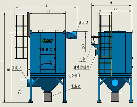 濾筒除塵器一體機(jī)結(jié)構(gòu)設(shè)計(jì)緊湊、合理,采用風(fēng)機(jī)內(nèi)置式結(jié)構(gòu)。占地面積小,可放室內(nèi)或室外,為滿足現(xiàn)場(chǎng)不同工況要求開發(fā)出了成套的一系列的規(guī)格型號(hào);